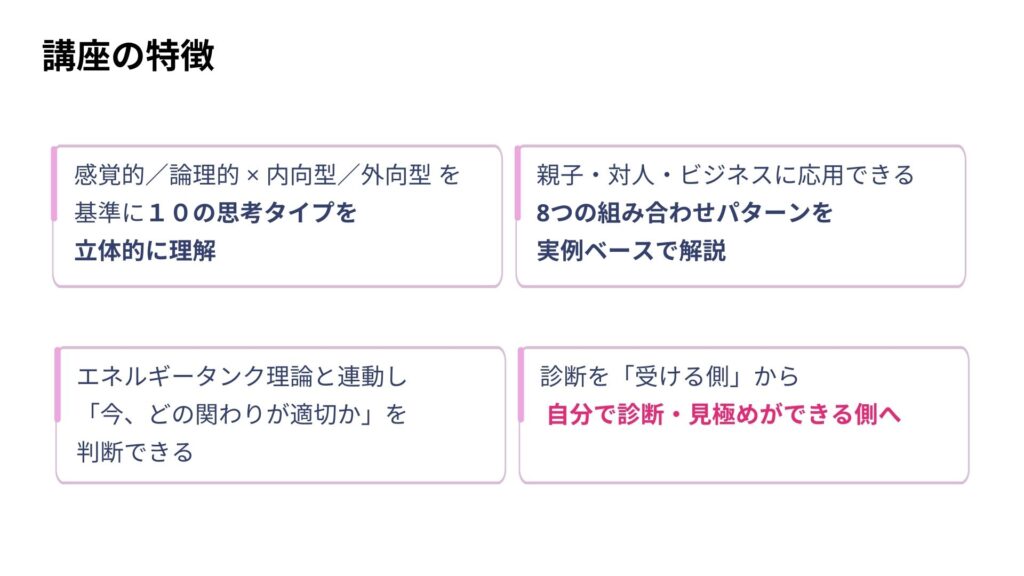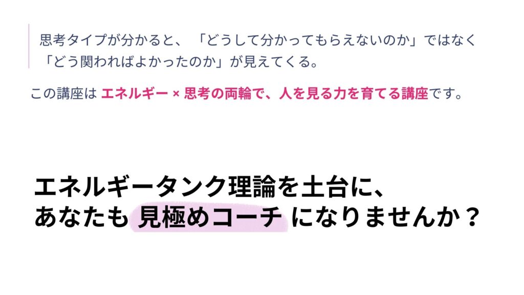見極めコーチング講座(思考タイプ分析マスター講座)